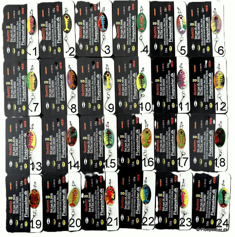 Disse små skeleton blink vejer 1,5g,og er lette at kaste